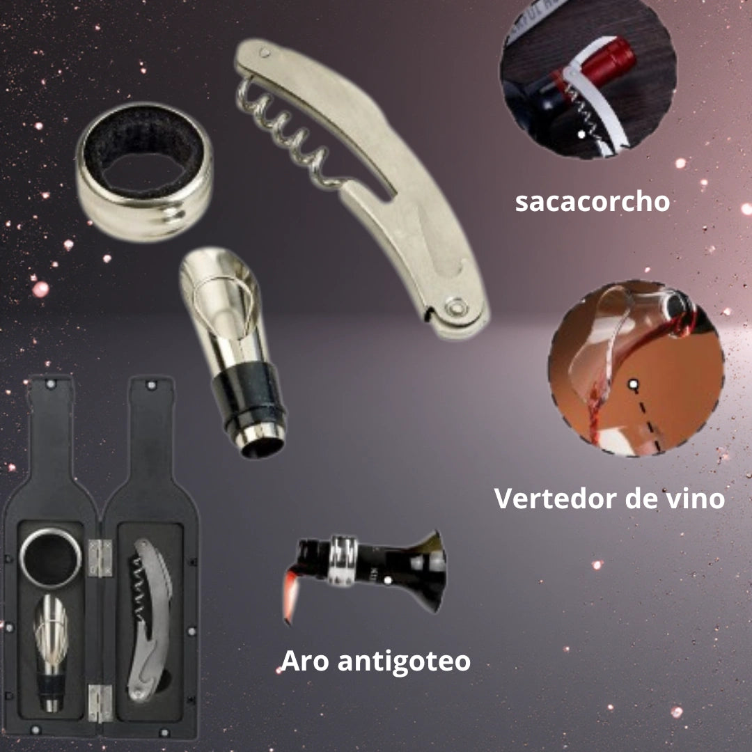 Sí, viene con tres herramientas: sacacorchos tipo sommelier, aro antigoteo y vertedor con tapón.