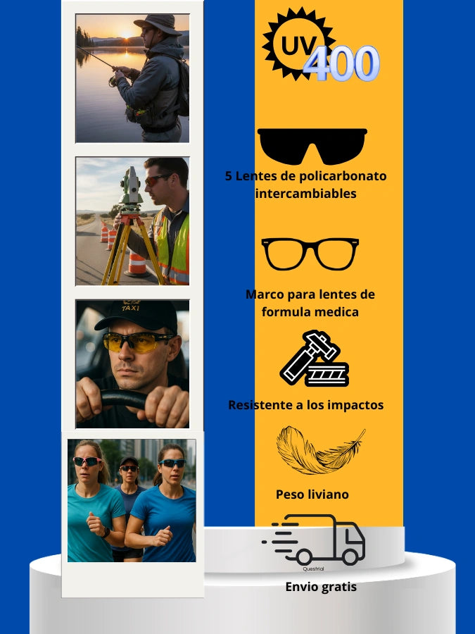 Sí, incluyen lentes intercambiables, como un lente polarizado UV400, lente transparente para luz natural, otro para luz azul/artificial, uno amarillo para noche y uno verde azulado para disfrutar mejor la naturaleza. Además, algunas versiones incluyen lentes fotocromáticos que se oscurecen o aclaran automáticamente.